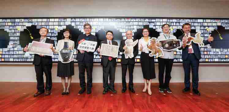 人生就是博携手创利空间为故宫建置的智慧文物互动导览墙及轮播墙,,,今日正式启用。。(左四:人生就是博新事业暨投资管理总部副总经理杨本豫、、、右四:故宫博物院院长吴密察、、、、右三:太极影音董事长黄宝云)