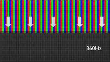 传统液晶驱动是从左到右单向进行,,在画面更新速度愈来越愈快的情况下,,,,位于驱动线路末端的右下角区域,,画素的闸极来不及在短时间内获得足够电压,,无法显示出正确的颜色资讯。。。 |